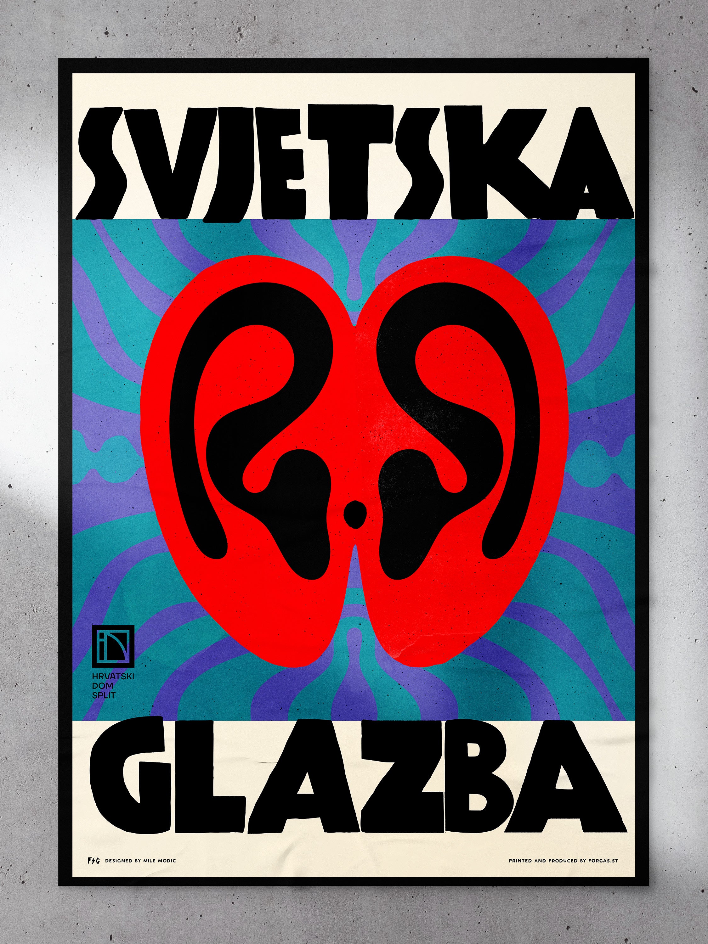 The posters for events at "Hrvatski Dom" Split Concert Hall are designed by Mile Modic, known for his retro style. Each poster reflects the theme of the event with clear typography, striking visuals, and a sophisticated look, making them appealing and easy to understand.